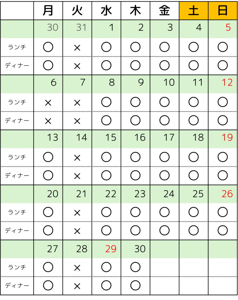 要ご予約menuは、事前にご予約ください。