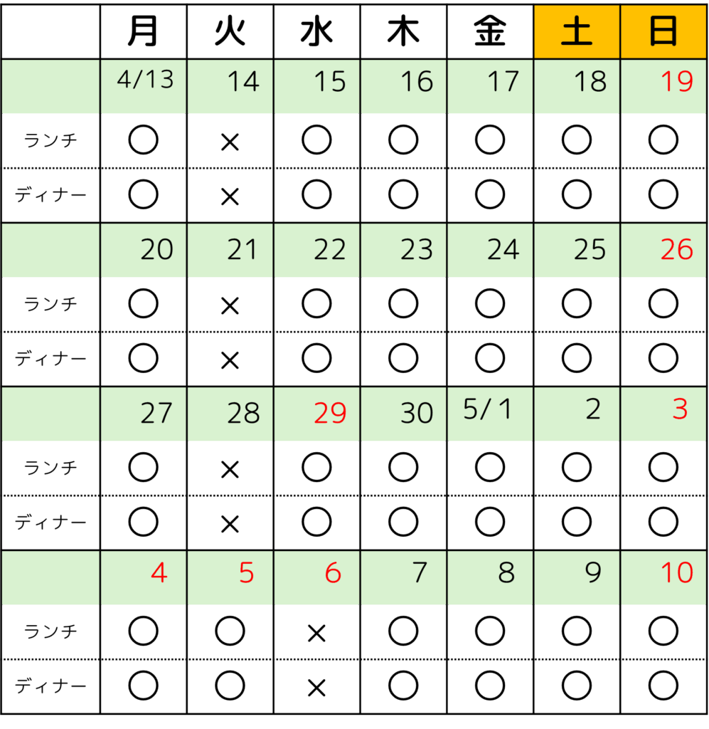 DINNER TIME 17:30~ご相談ください。